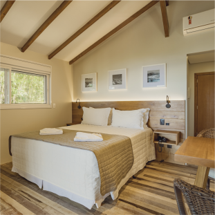 Cada detalhe importa, pensando assim a Hospedaria das Brisas disponibiliza suítes com uma decoração moderna, requintada e ao mesmo tempo aconchegante, sempre em conexão com a natureza da Praia do Rosa.